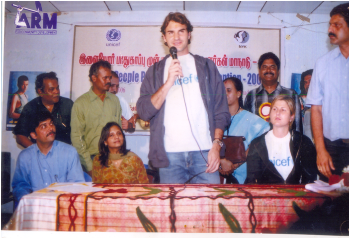 Mr. Rodger Federer Number one World Tennis Player visited our Villupuram office as UNICEF ambassador to witness the outcome of the Out of School youth Health promotion programme and appreciated the performance of our Organization during the year 2008.
